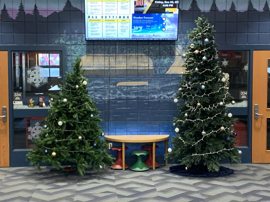It's beginning to look a lot like Christmas! Thanks to members of the Unified Champion Schools' team for decorating the area by the Elementary Media Center and leading a readers' theater production!